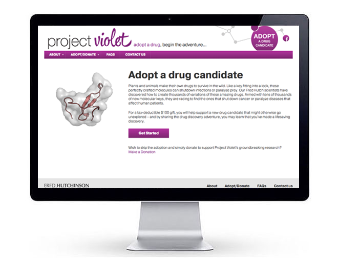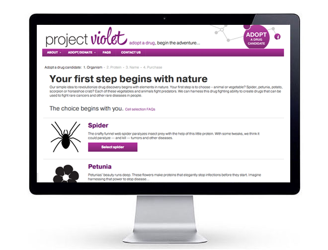 Perspectives: "The project is crowdfunding to enlist the help of the community to develop a fundamentally new class of anti-cancer compounds derived from scaffolds of nature – chemical templates from organisms such as violets, scorpions and sunflowers – to attack cancer cells while leaving healthy cells untouched. The ultimate goal is to develop highly targeted treatments that kill the cancer while sparing patients from the Project Violet Logotoxic side effects of chemotherapy such as hair loss and nausea." - CROWDFUND INSIDER