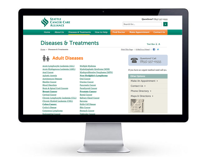 Mission: Raise visibility for Seattle's leading coalition of cancer care providers while focusing on usability and how visitors are finding and connecting with the content they seek.